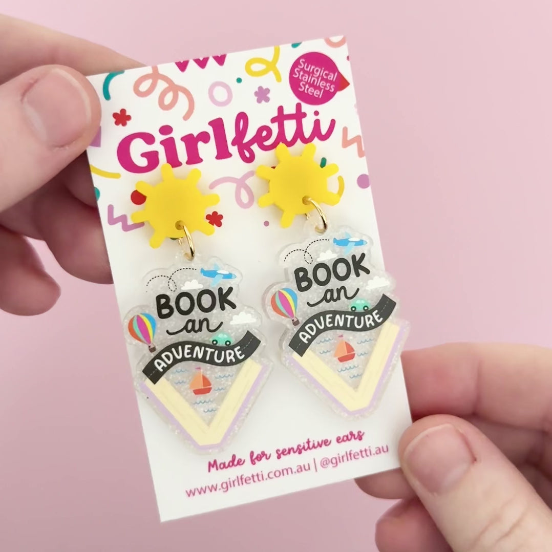 - 'Book An Adventure' Book Cover Dangle Earrings