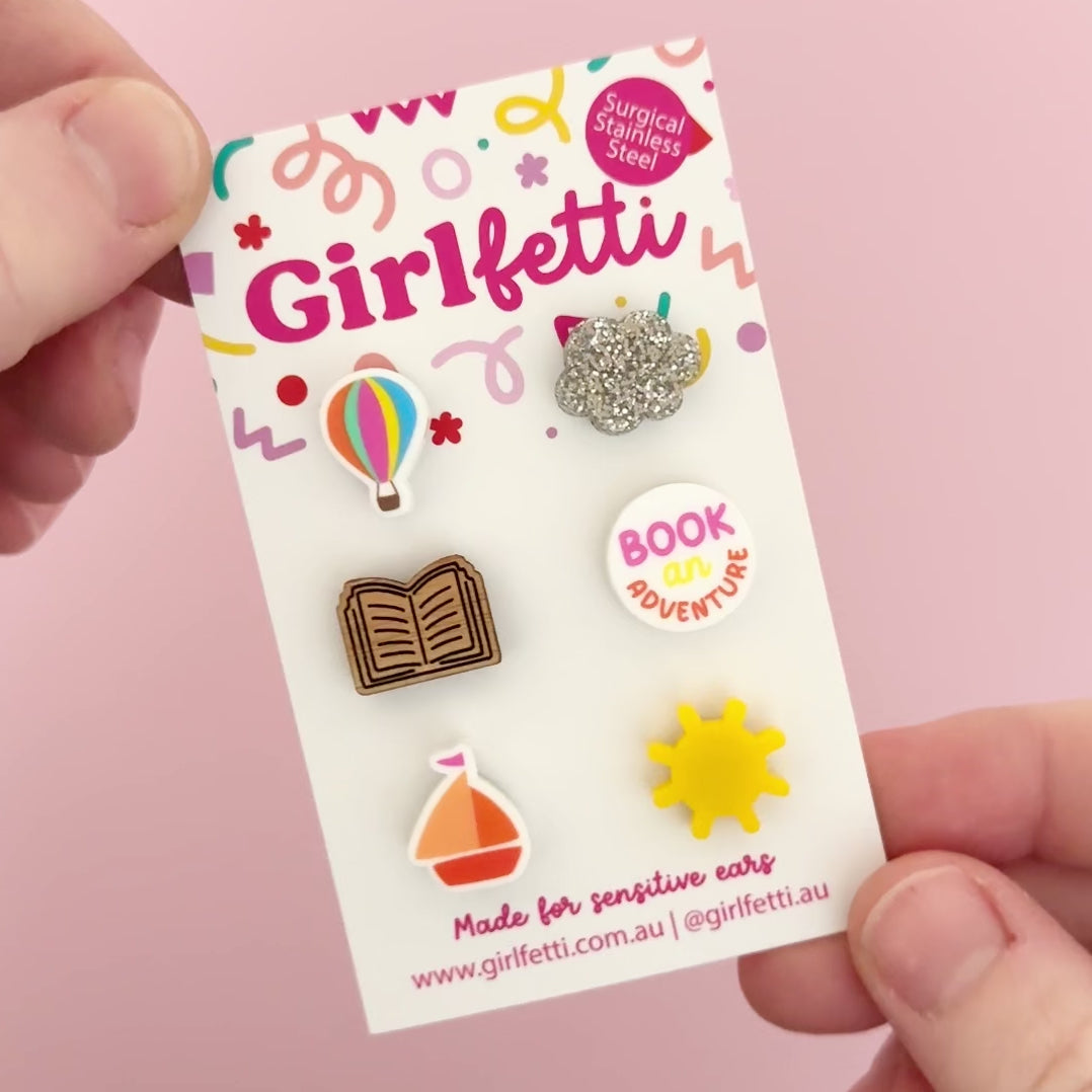 - 'Book An Adventure' Mismatch Stud Earring Bundle Pack