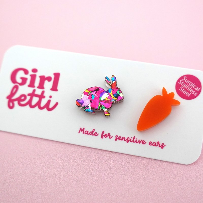 Easter would not be complete without a pair of our cute mismatch bunny and carrot studs.