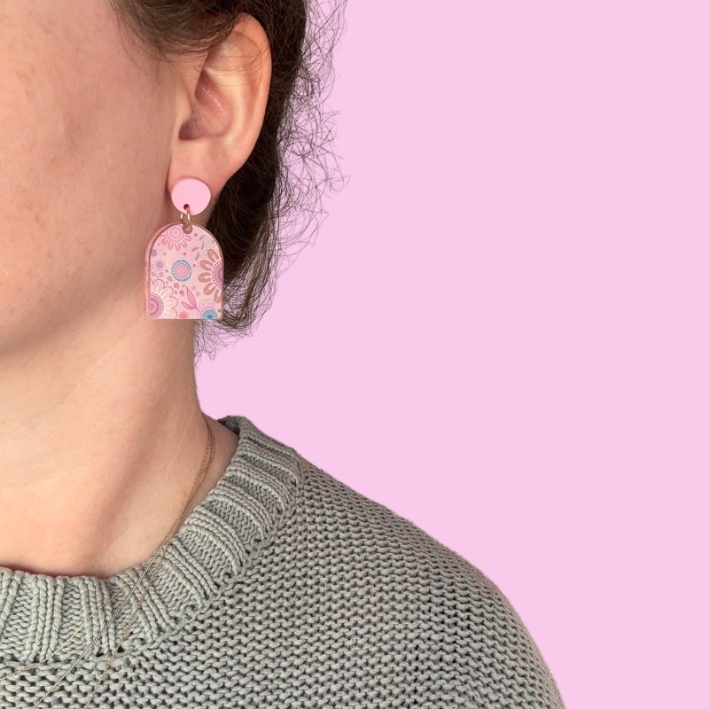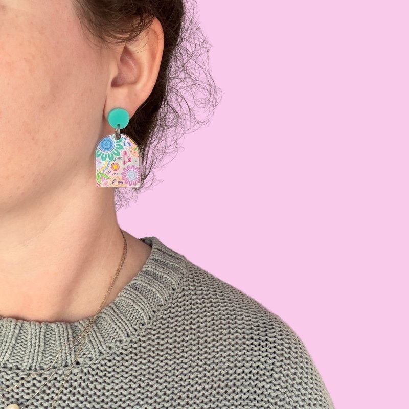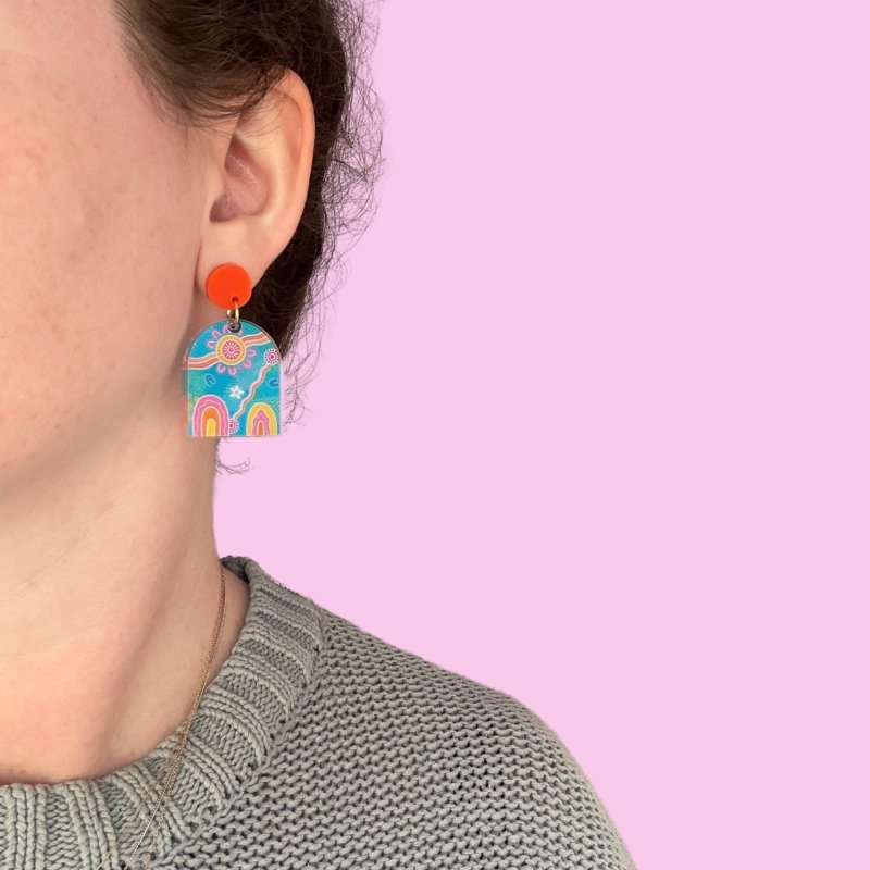 Meet our 'Arch Dangle Earrings', created in collaboration with talented Indigenous Artist, Caitlin Trindall from Mirii Art.