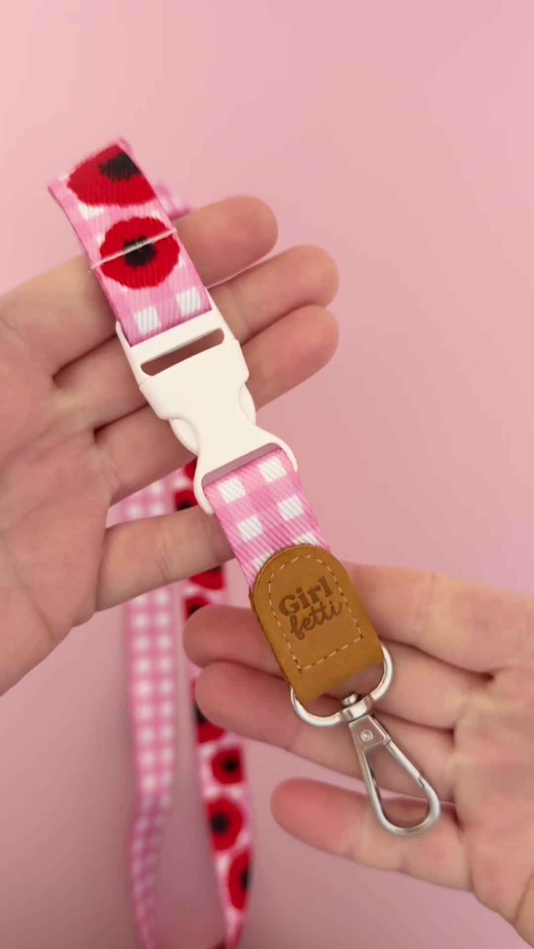 - Red Poppy Fabric Lanyard- Approx. 66mm from safety clasp to the bottom of the metal clasp