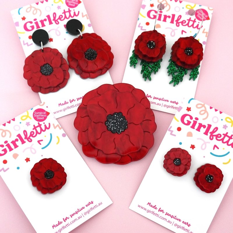 Visit our Poppy Collection to view more fun earrings and accessories for your outfit this ANZAC and Remembrance Day.
