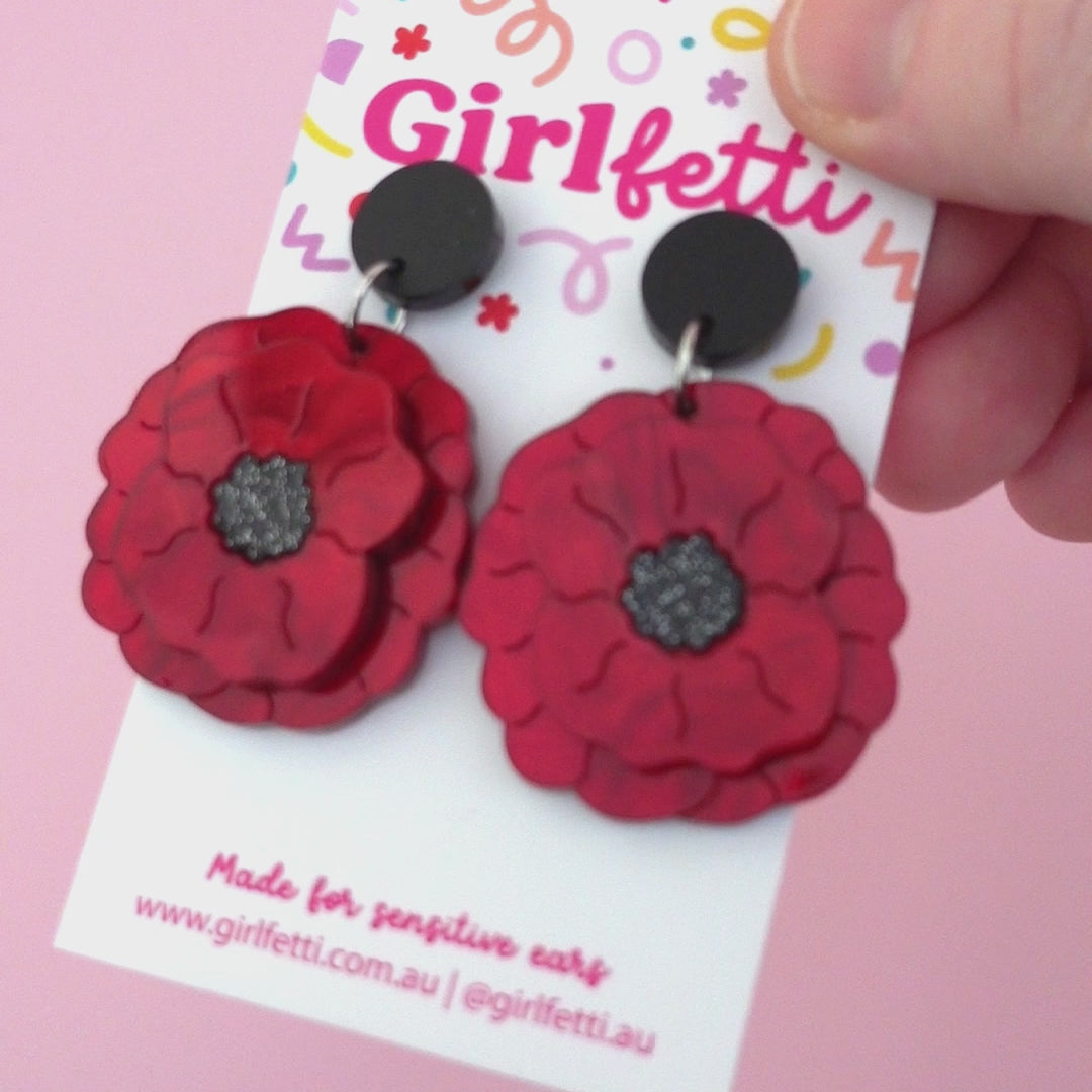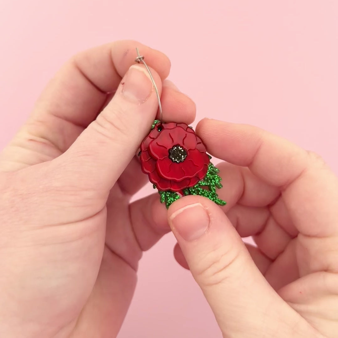 - Red Poppy Dangle with stud top - Approx. 35mm (wide) x 49mm (high) in total.