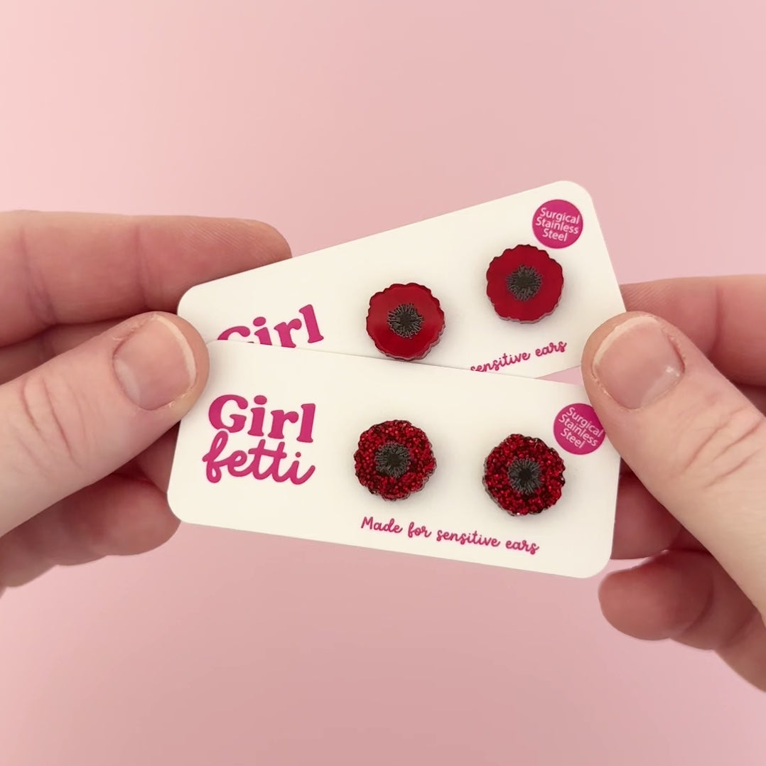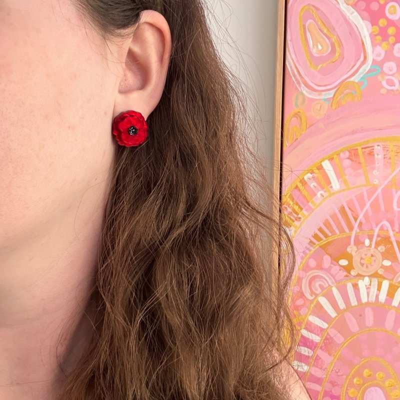 - Red Poppy Studs- Approx. 13mm (wide) x 13mm (high) in total