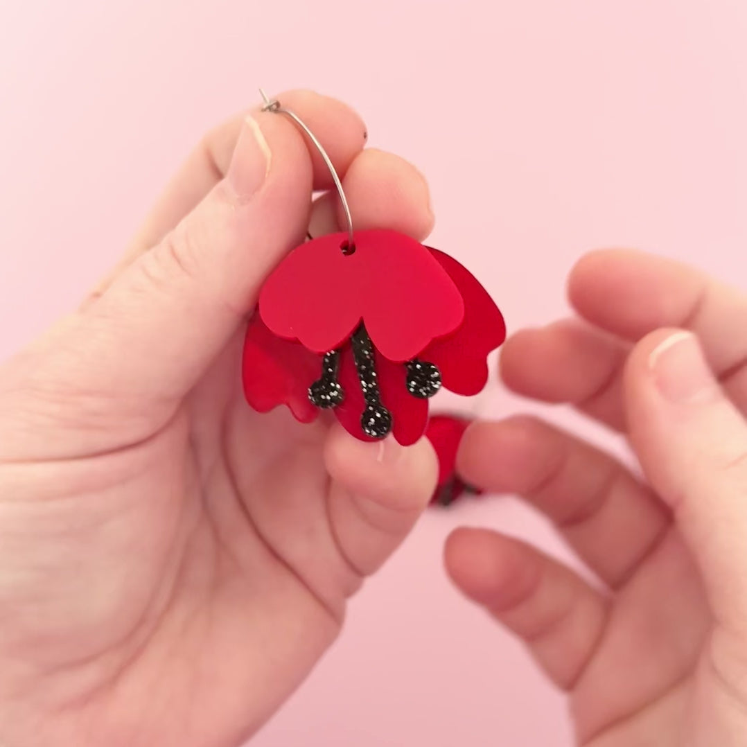 - Red Poppy Hoop Dangles- Approx. 42mm (wide) x 55mm (high) in total