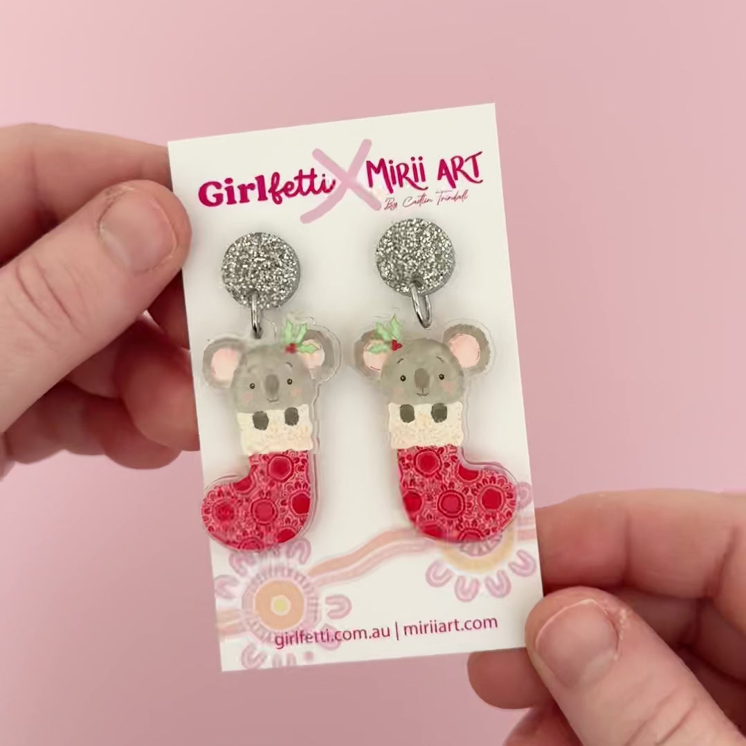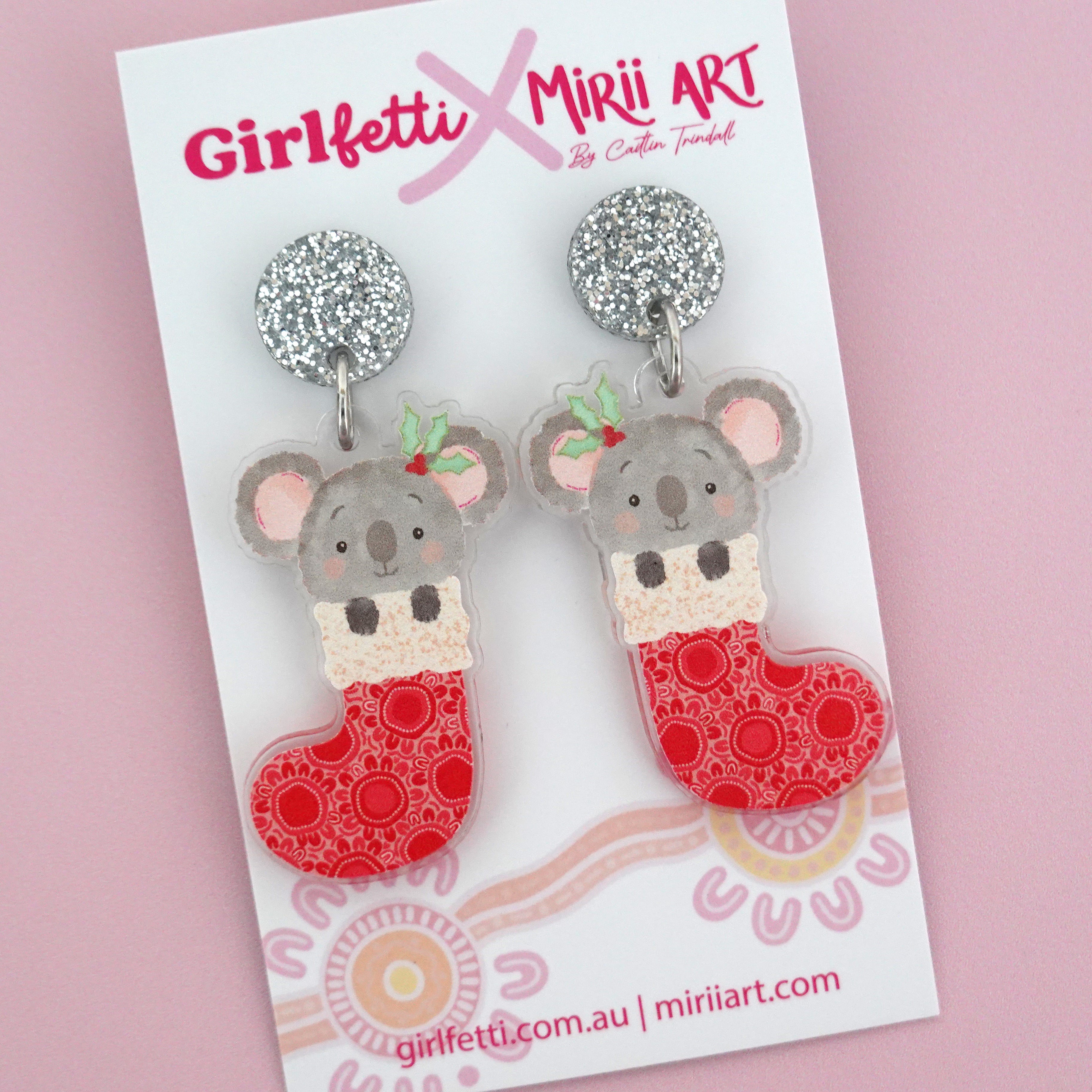 Meet our 'Christmas Koala Dangle Earrings', created in collaboration with talented Indigenous Artist, Caitlin Trindall from Mirii Art.