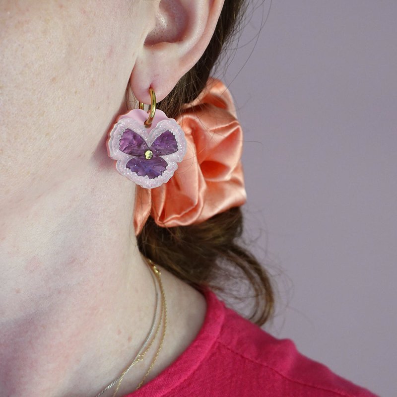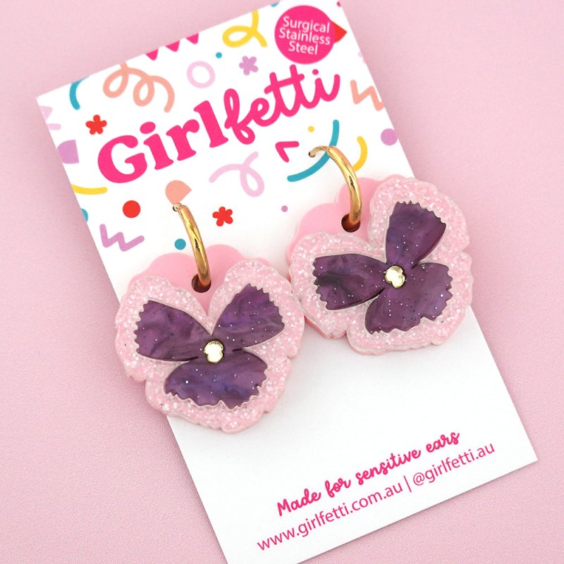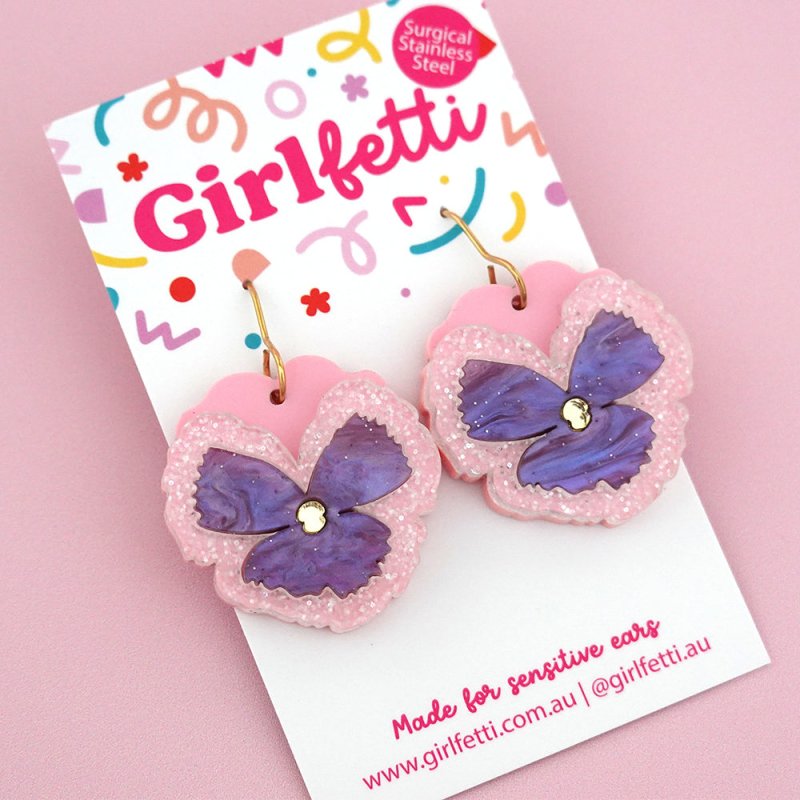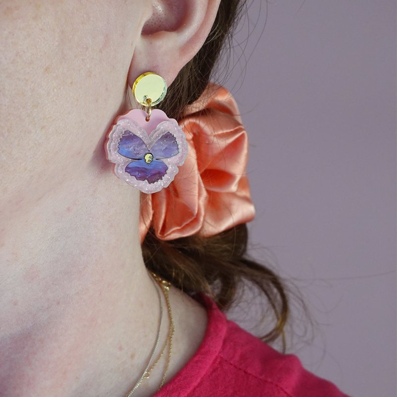 Meet our Pansy Dangle Earrings- a beautiful, glittery dangle that is sure to turn heads.