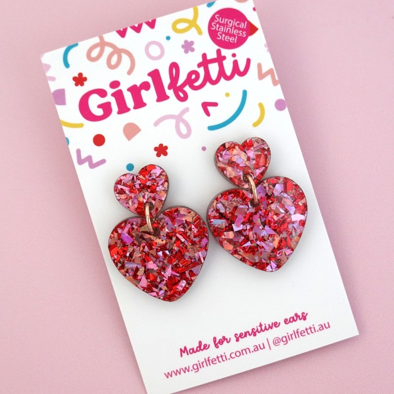 Meet our 'Small Heart Dangle Earring', a must have pair of heart earrings available in 9 colour-packed sparkles.