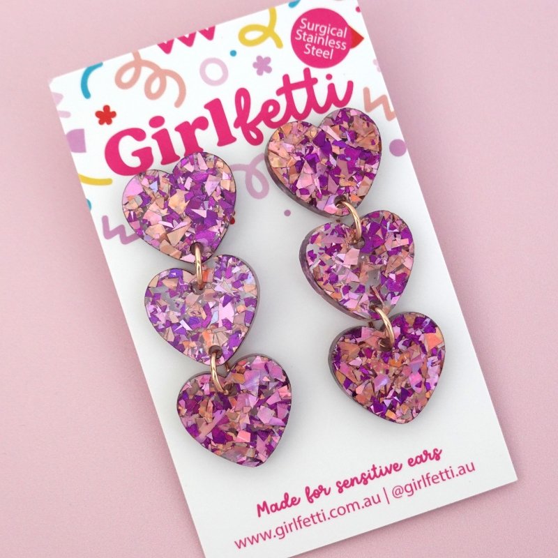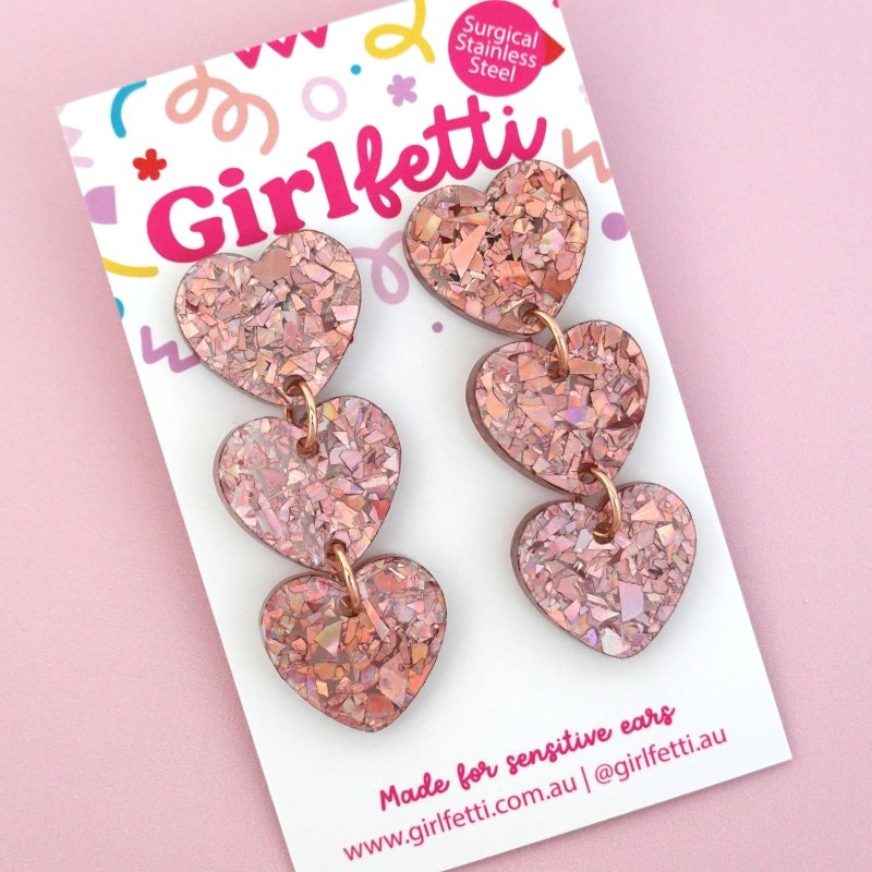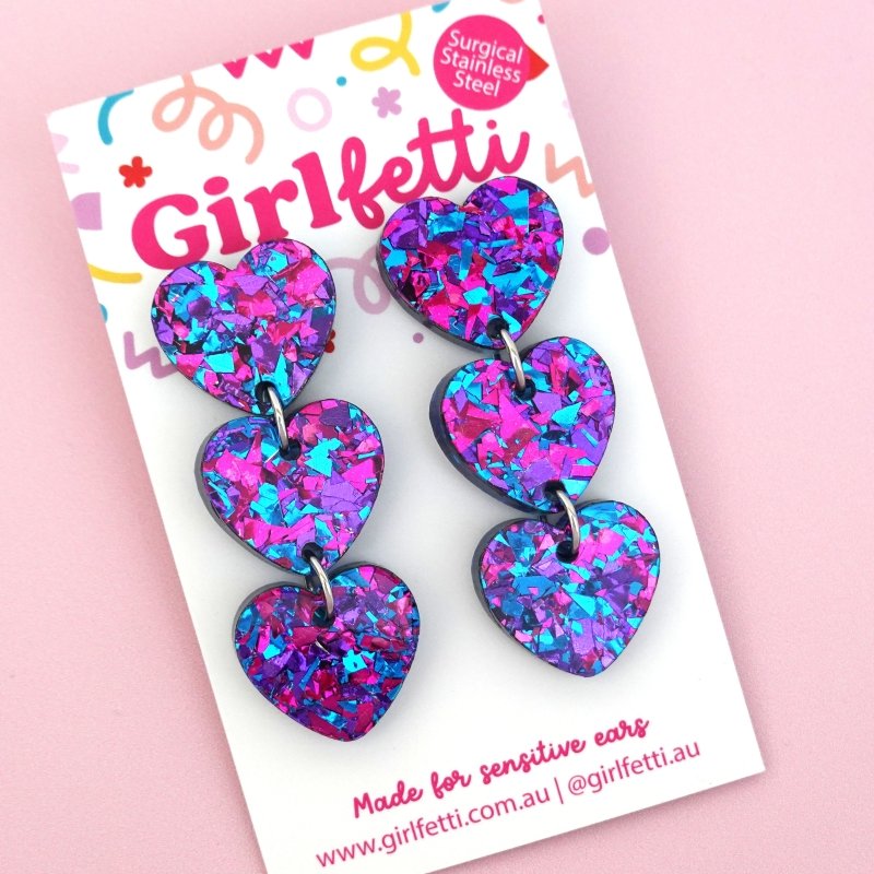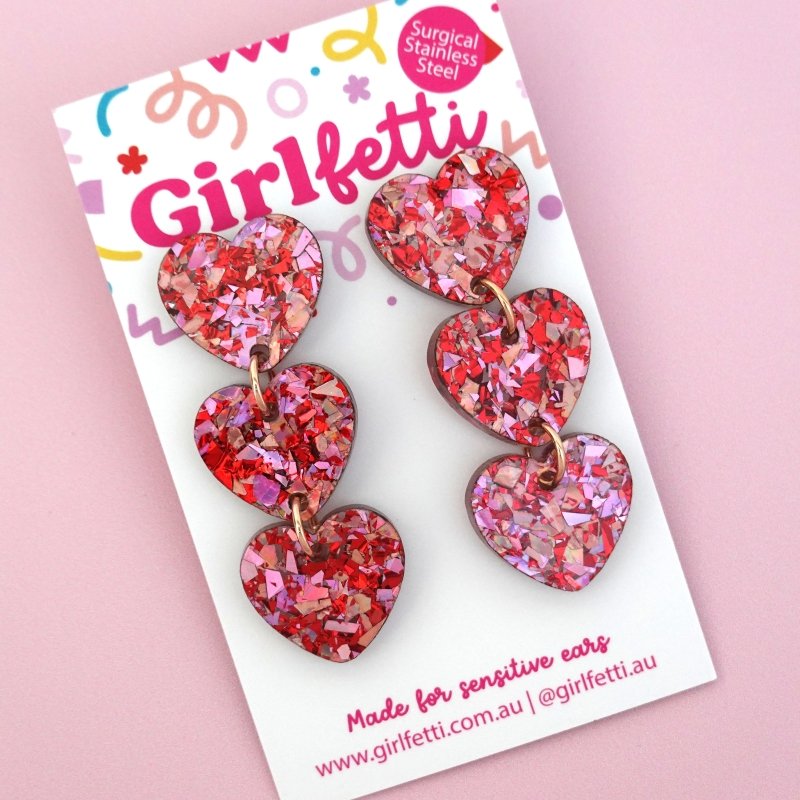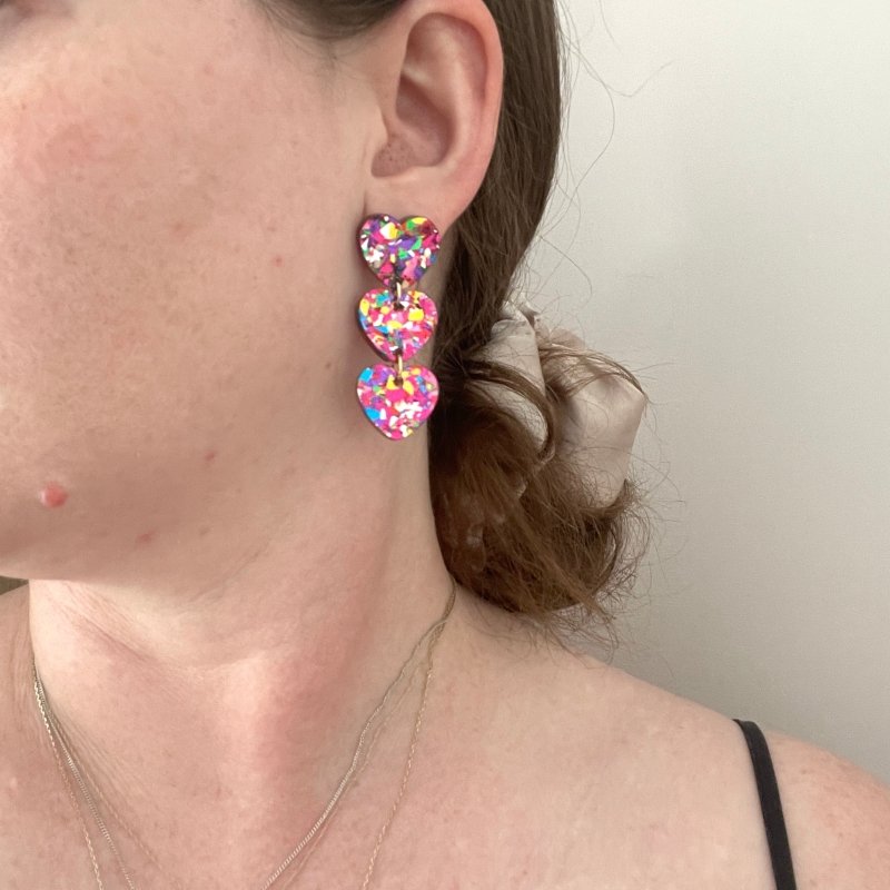 Triple Heart Acrylic Dangle Earrings