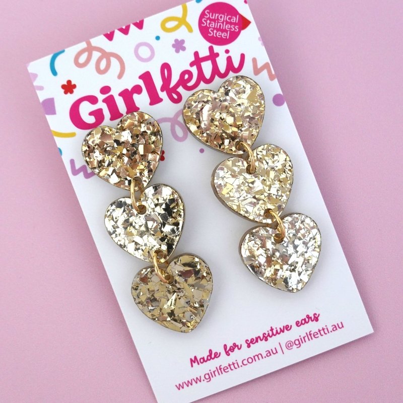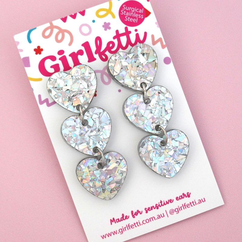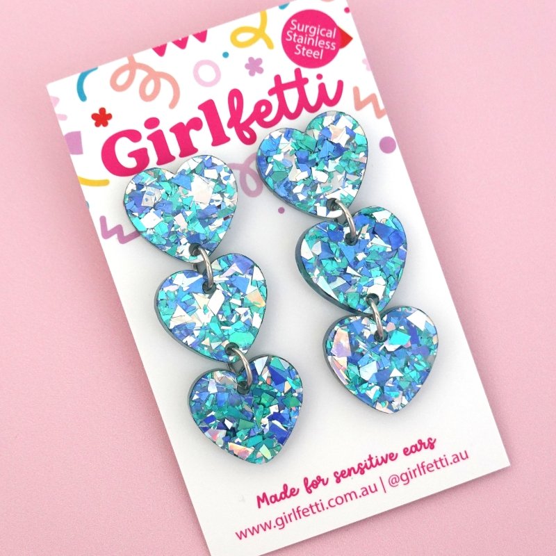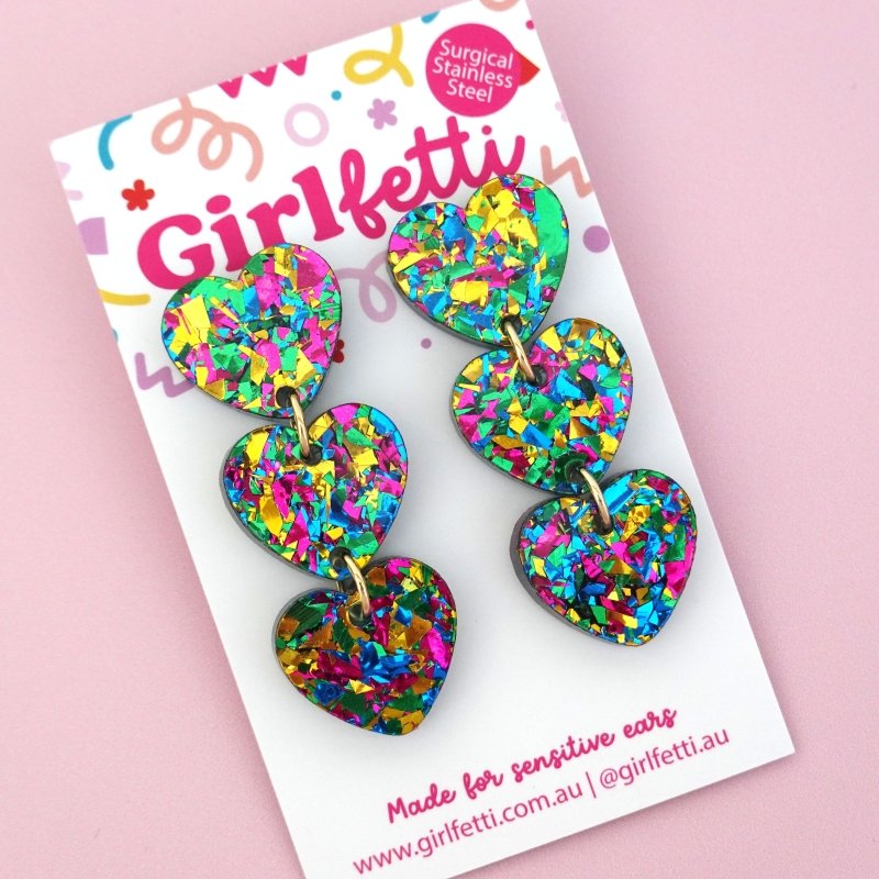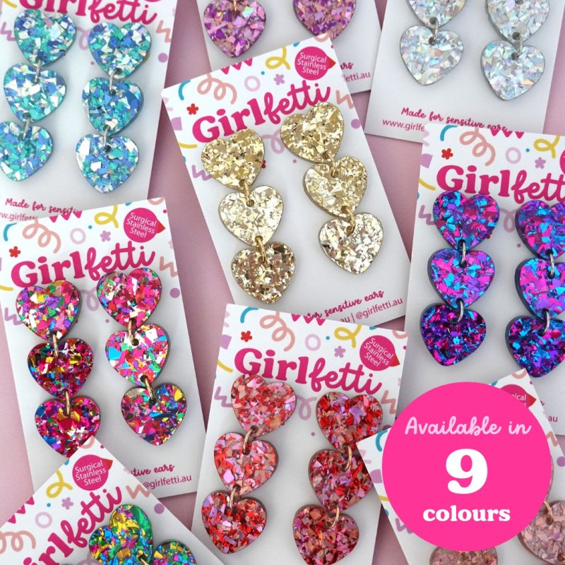 Meet our 'Triple Heart Dangle Earring', a must have pair of heart earrings available in 9 colour-packed sparkles.
