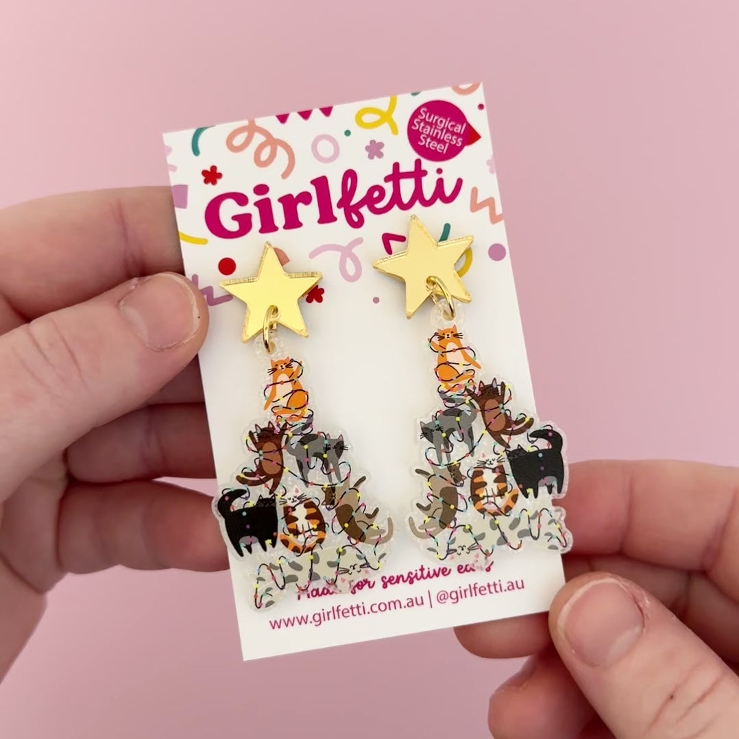Our 'Cat Christmas Tree Dangles' are the fun way to easily add a bit of Christmas cheer to any outfit.