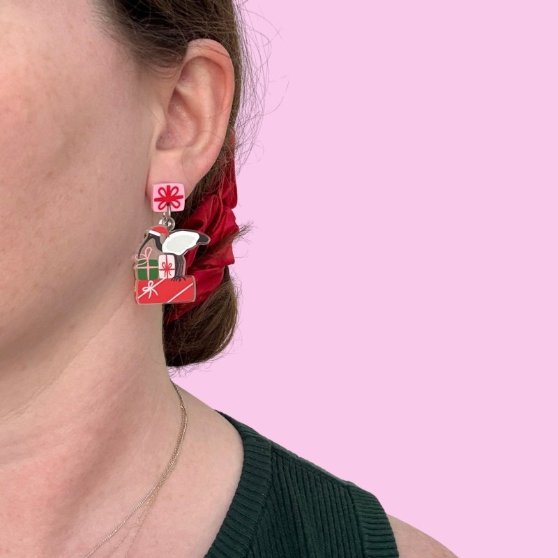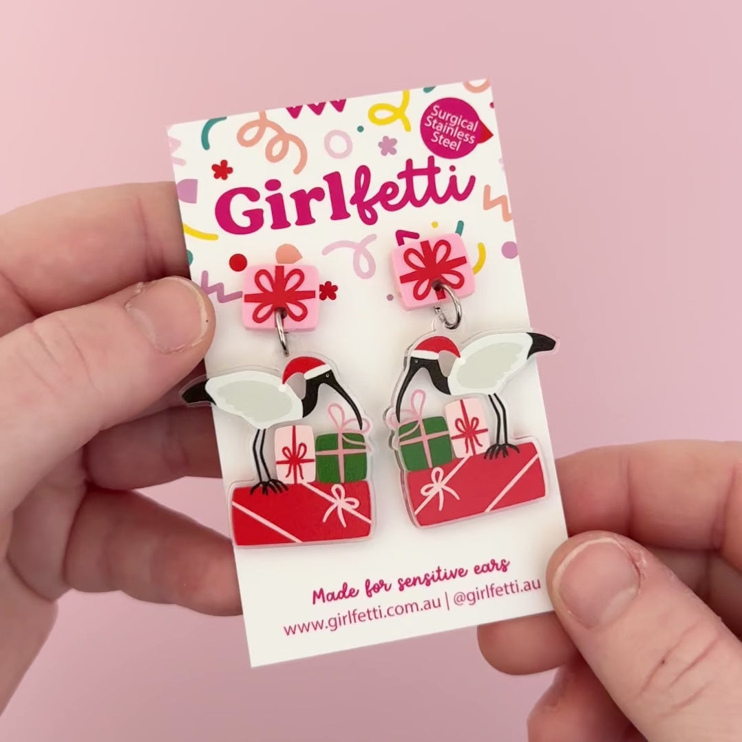 Our 'Christmas Ibis Bin Chicken Dangles' are the fun way to easily add a bit of Christmas cheer to any outfit.