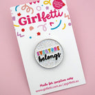 Everyone Belongs Enamel Pin is a vibrant hard enamel lapel pin designed for teachers and inclusion advocates who love meaningful, colourful accessories. Featuring a white and silver glitter background with rainbow lettering that reads “everyone belongs”, this eye-catching enamel pin adds sparkle, positivity and purpose to your classroom outfit, jacket or lanyard.