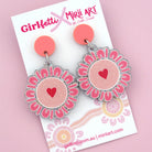 Women’s Gathering Acrylic Dangle Earrings are lightweight statement earrings featuring artwork by Indigenous artist Caitlin Trindall of Mirii Art, created as part of the Girlfetti x Mirii Art collaboration.