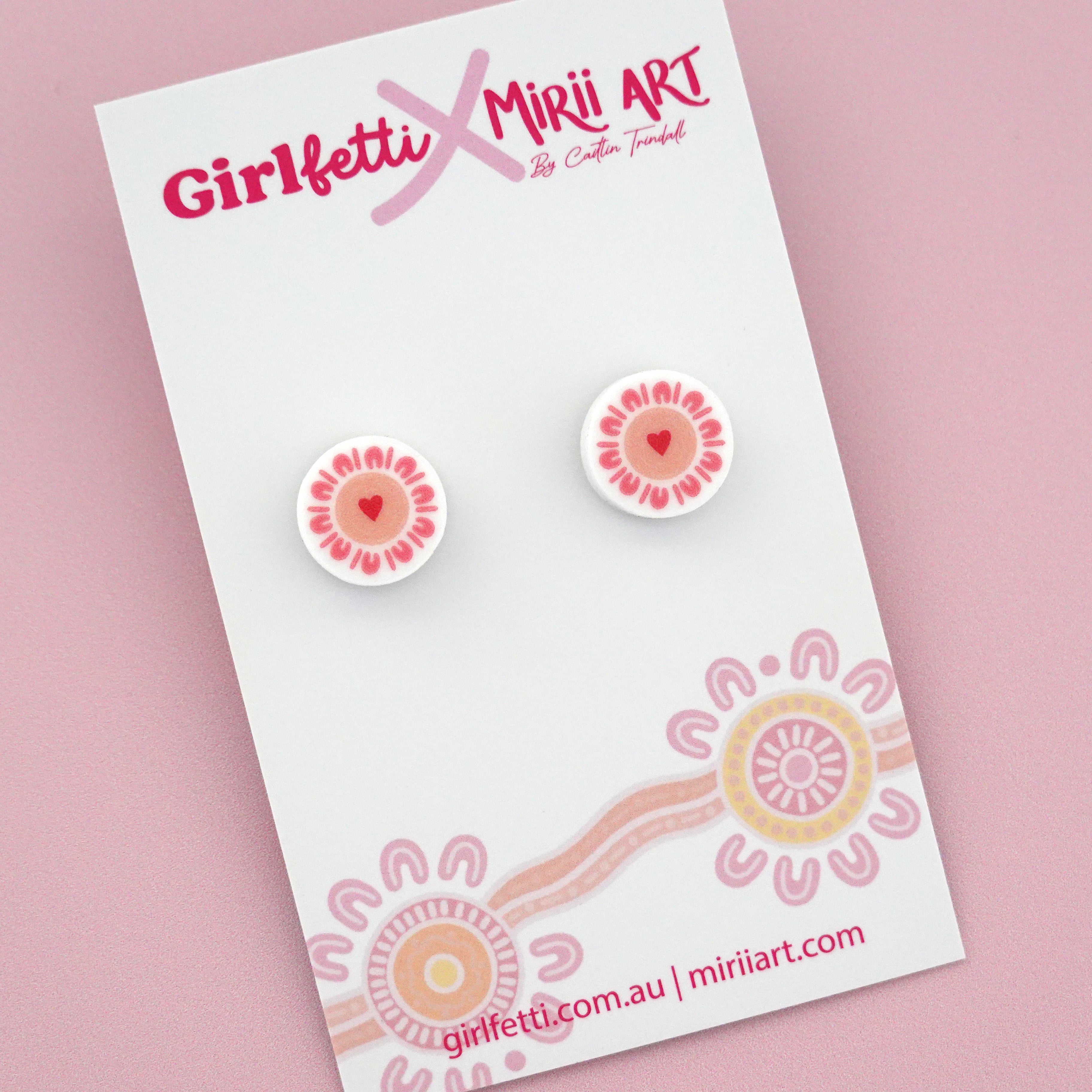 Discover the full Girlfetti x Mirii Art Collaboration, a special collection of earrings and accessories made from authentic Aboriginal artwork which honour women, connection and community.