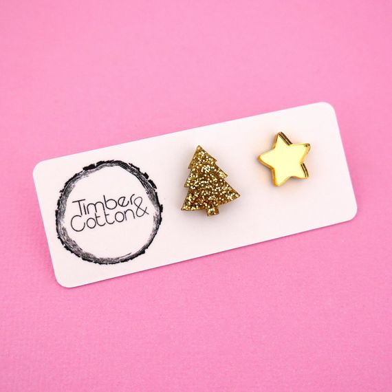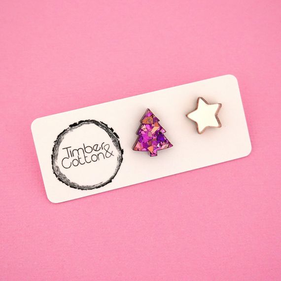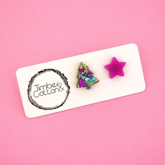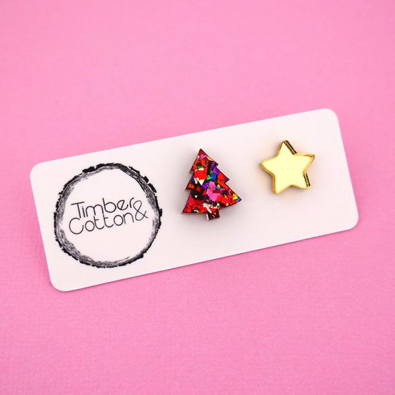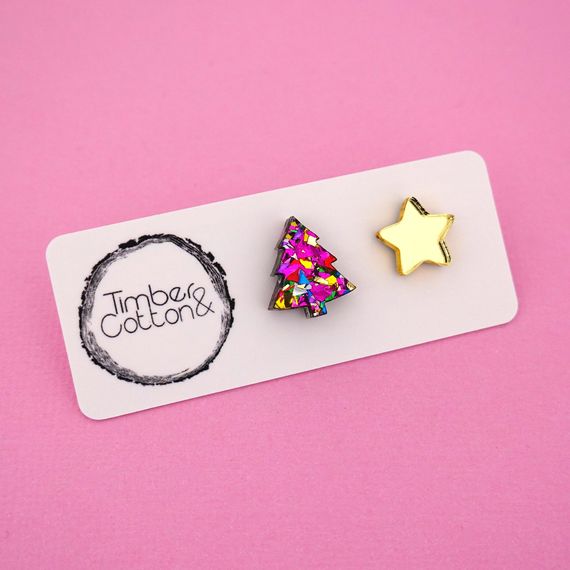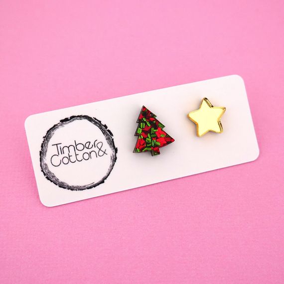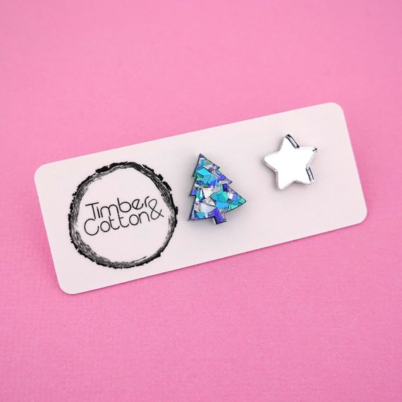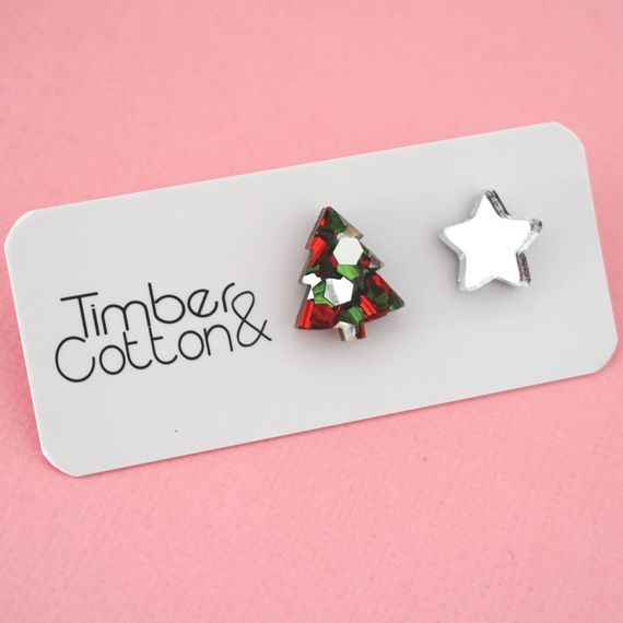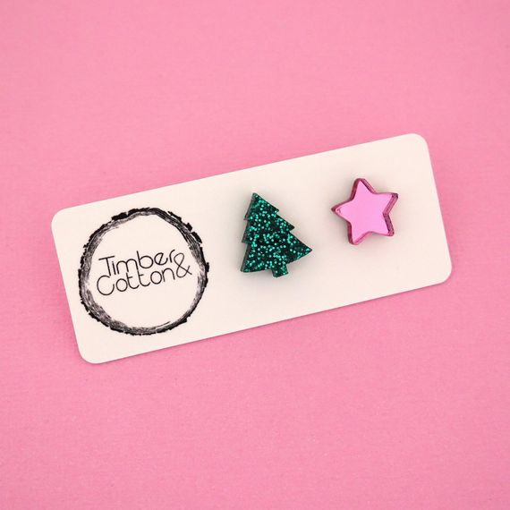 Looking for a fun-filled pair of studs for the festive season? Our 'Christmas Tree & Star' mismatch studs will make a fun and glittery addition to your outfit this Christmas.