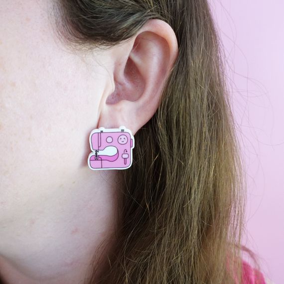 Meet our Sewing Machine Statement Stud Earrings, the perfect way to add a pop of fun to your outfit and express your quirky personality.