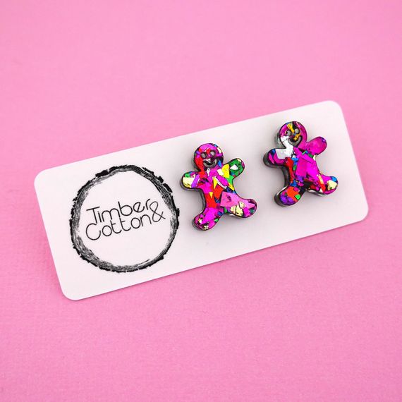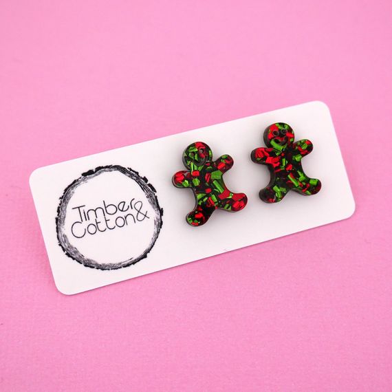 Christmas Gingerbread Man Acrylic Stud Earrings