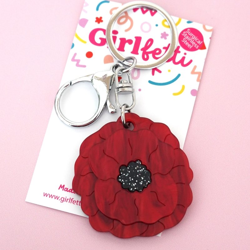 Meet our acrylic poppy keyring- a perfect way to show your support for our Veterans and add a pop of red to your keys or handbag.
